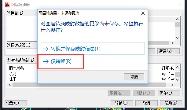 3、输入快捷键命令laytrans弹出下面的对话框。