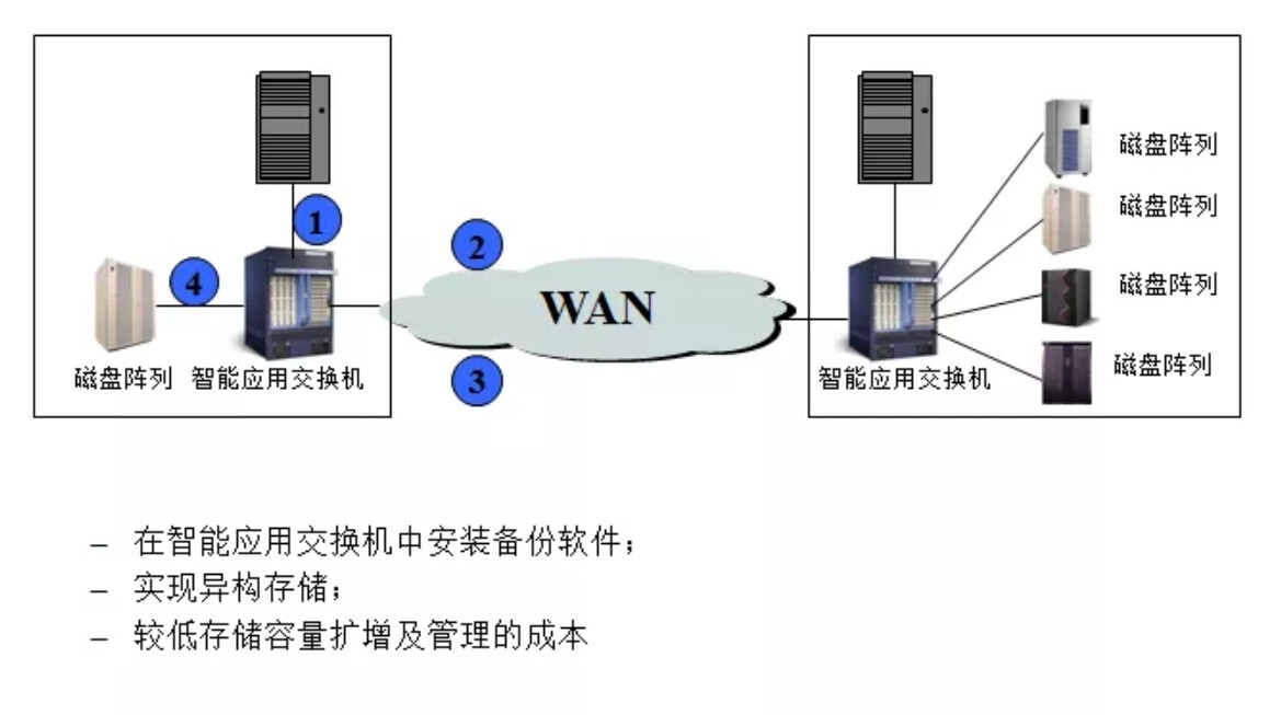 该方式可以备份系统的价格满足备份和异地容灾功能,能够避免主生产中心由于地震、火灾或其他灾害造成的数据丢失。