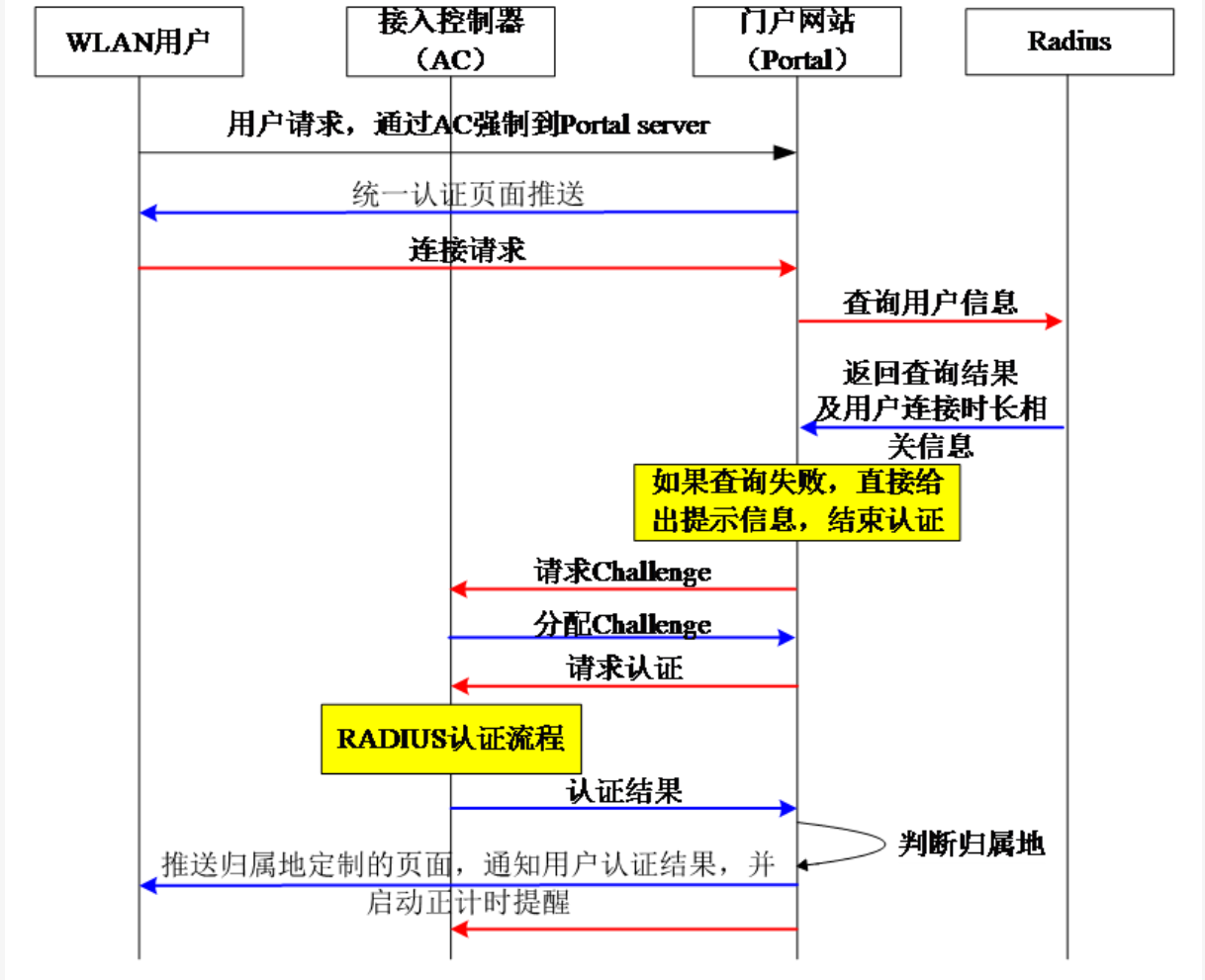 在认证过程中,与Portal服务器、AAA服务器交互,完成身份认证/授权的功能。