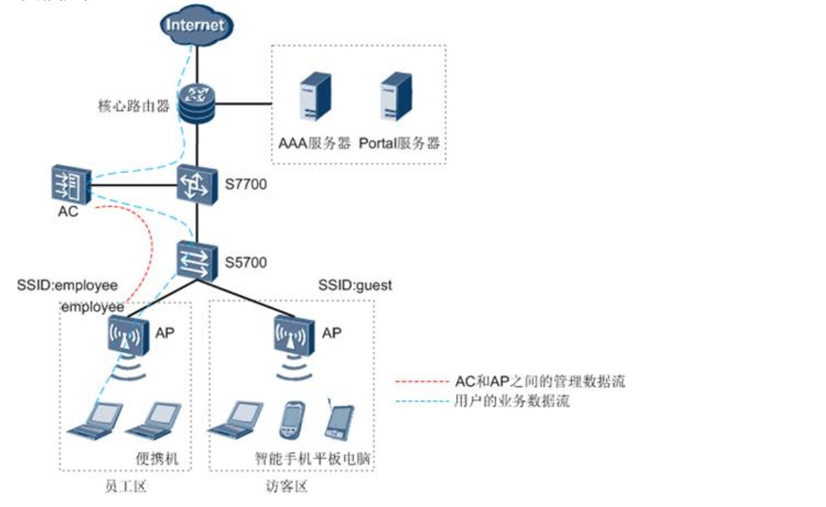 不同的用户接入网络的权限可能会不一样。例如访客认证后只允许访问Internet,而员工认证能够访问内部的业务系统。终端认证后访问网络的权限大小,是由AAA服务器说了算。